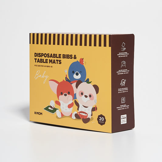 K-MOM vienkartinis stalo kilimėlis ir vienkartinis seilinukas (20 vnt.)